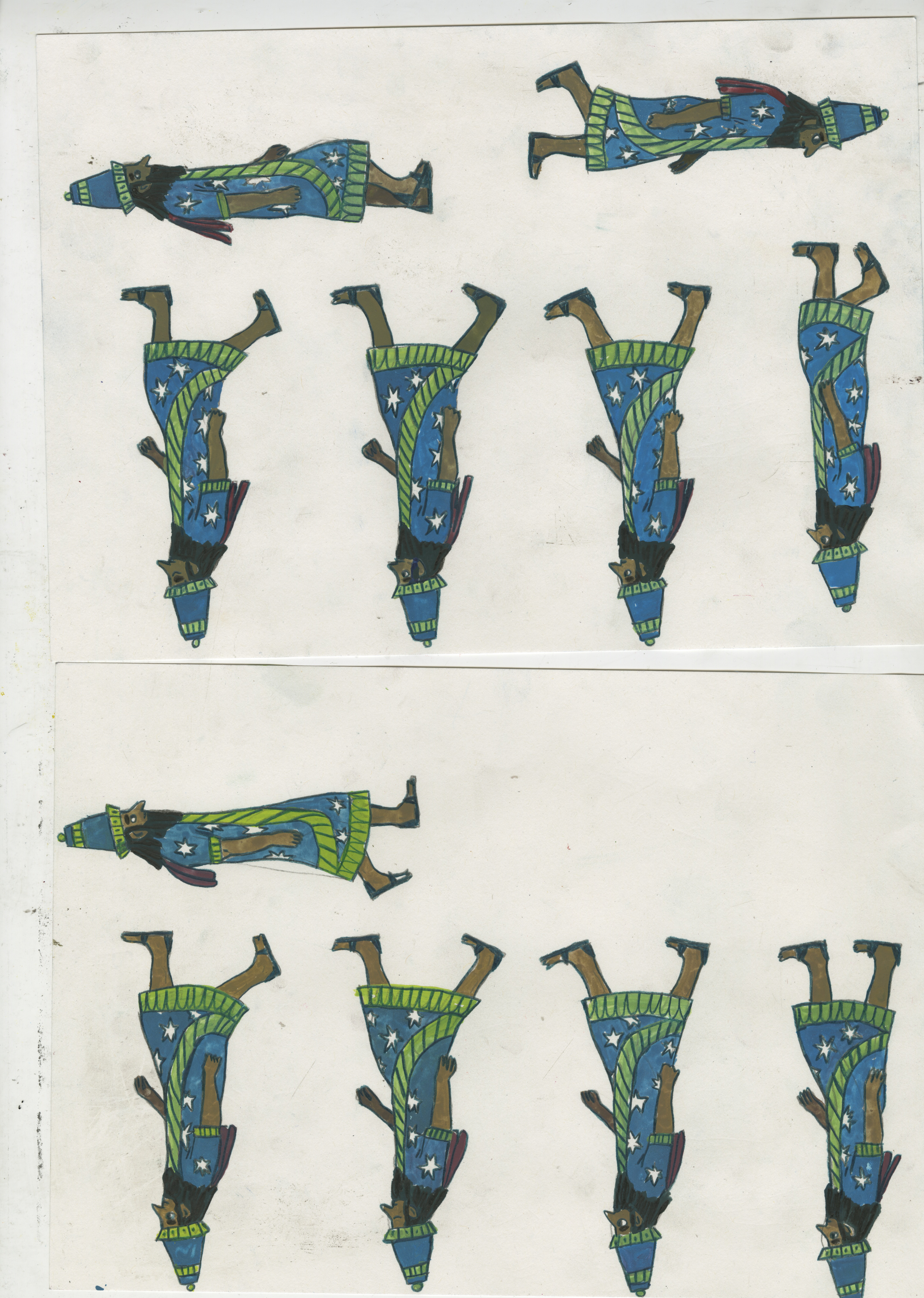 Each frame was painted and outlined by hand with gouache and coloured pencil. Created as part of a university brief.